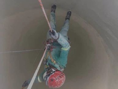 Full roped access, with confined space certification. With part of our maintenance, services we offer on silos, cleaning is an integral part of the maintenance. to prevent build up, bridging and helps flow of the product.
